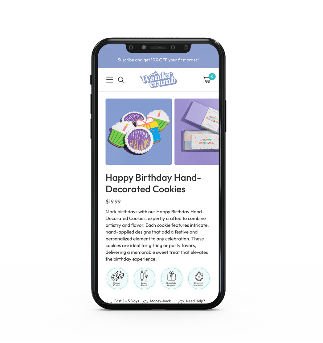 Replicamos la estructura base de la tienda de Crumbark y la adaptamos al branding de Wandercrumb, permitiendo una ejecución más rápida y eficiente del proyecto.